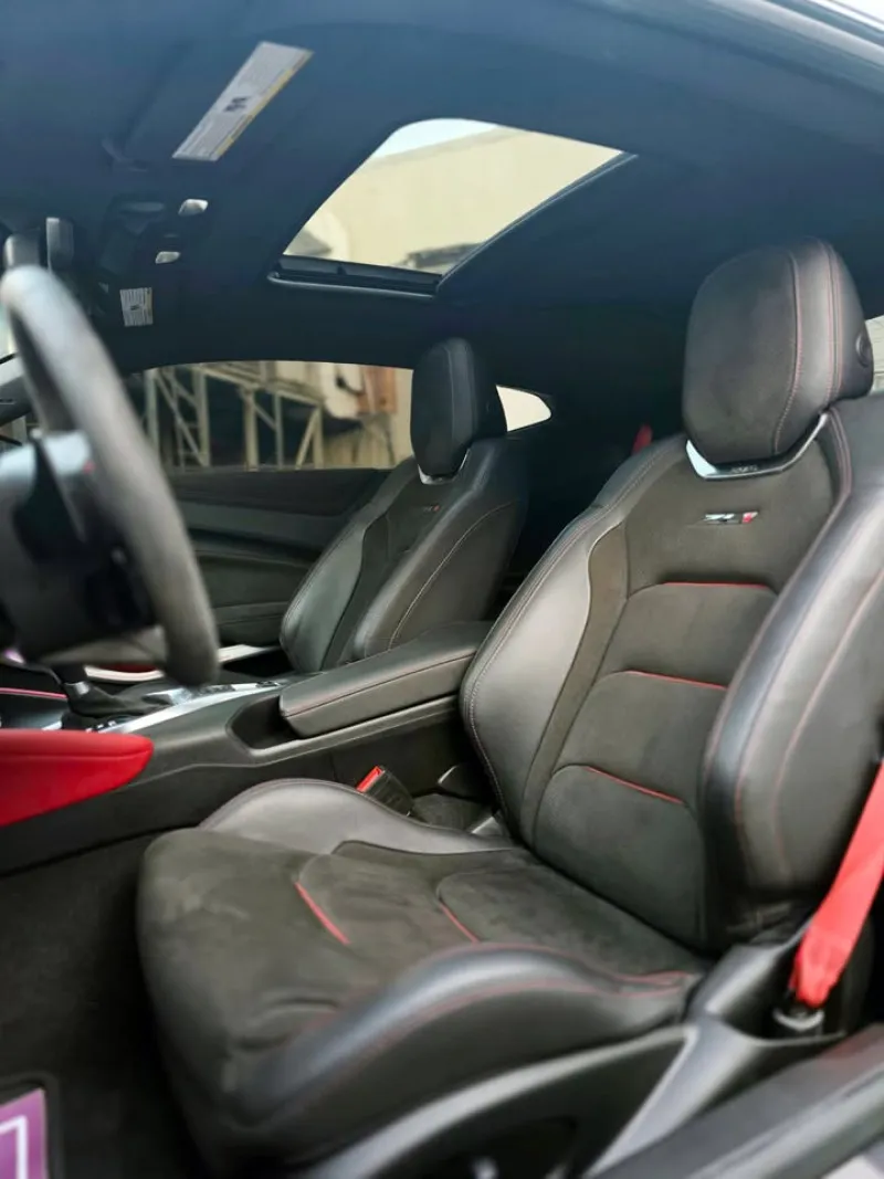 Chevrolet Camaro ZL1 YOM - 2023 Mileage - 45,000 km Engine: 6.2 L LT4 supercharged V8 Horsepower: 650 hp @ 6,400 rpm 0–60 mph: approximately 3.5 seconds top speed: approximately 190–198 mph (~307–318 km/h) Torque: 650 lb‑ft (≈ 881 Nm) @ 3,600 rpm Transmission: Automatic (10-speed) Drive: Rear-wheel drive (RWD) Color: Charcoal (grey shade) Style: 20-inch blade-design aluminum wheels. Rear spoiler Quad Exhaust Interior: Alcantara leather interior BOSE sound system wireless Android Auto and Apple CarPlay Safety Features: Lane Change Alert with Side-Blind Zone Alert. Rear Cross-Traffic Alert. Front Pedestrian braking. Automatic Emergency Braking Intelli Beam Auto High-Beam Assist. Forward Collision Alert. Following Distance Indicator. Rear-Vision Camera. Lane-Keep Assist with Lane Departure Warning. ???? Rockers Autohaus ???? +971 55 295 3276