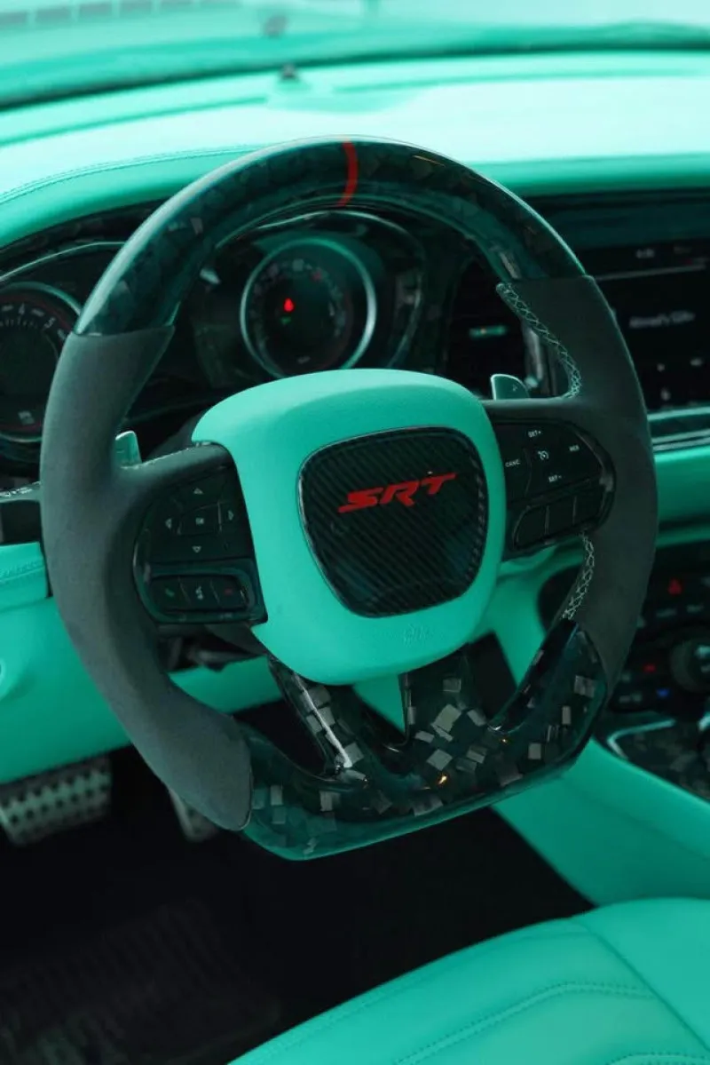 Dodge Challenger SRT Scat Pack 6.4L ???????? Mileage: 61,000 km Very clean car, no issues at all, always well-maintained and used only on weekends. Equipped with full Hellcat wide-body kit, customized rims, rear spoiler, and racing exhaust. Fully customized interior in Tiffany color. Forged carbon fiber steering wheel with Alcantara finish. Star roof lights installed. Stock engine — 495 horsepower and 655 Nm of torque. 0–100 km/h in 4.2 seconds. Contact: 0522344667 - Location: UAE,Dubai