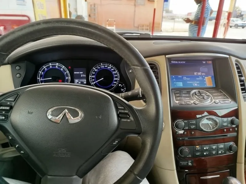 FABULOUS INFINITI QX50 2016 FOR YOUR HAPPINESS.GCC. ODO 182000KM. WHATSAPP. +971506312075 كروس أوفر محرك V6 سعة 3.7 لتر ناقل حركة أوتوماتيكي بـ 7 سرعات نظام دفع رباعي مقصورة داخلية جلدية ممتازة مقاعد أمامية كهربائية عجلات المنيوم قياس 17 بوصة، وفتحة سقف، ومصابيح أمامية أوتوماتيكية ونظام هاتف بلوتوث بدون استخدام اليدين، نظام تثبيت السرعة والتحكم على عجلة القيادة . عجلة قيادة كهربائية قابلة للإمالة والتلسكوب، نظام ستيريو Bose بستة أقراص مضغوطة/MP3، مرايا كهربائية، نظام تحكم في الثبات، نظام مراقبة المسار . نظام مراقبة الزاوية العمياء. نظام دخول وتشغيل ذكي بدون مفتاح نظام وسادة هوائية أمامية جانبية متطور. شاشة ملونة قياس 7 بوصات مع وحدة تحكم إنفينيتي لحاسوب الرحلات، ومعلومات إضافية عن السيارة، بما في ذلك نظام الملاحة DVD نظام الرؤية المحيطية لركن السيارة، الذي يستخدم أربع كاميرات لمحاكاة صورة بزاوية 360 درجة لما حول السيارة