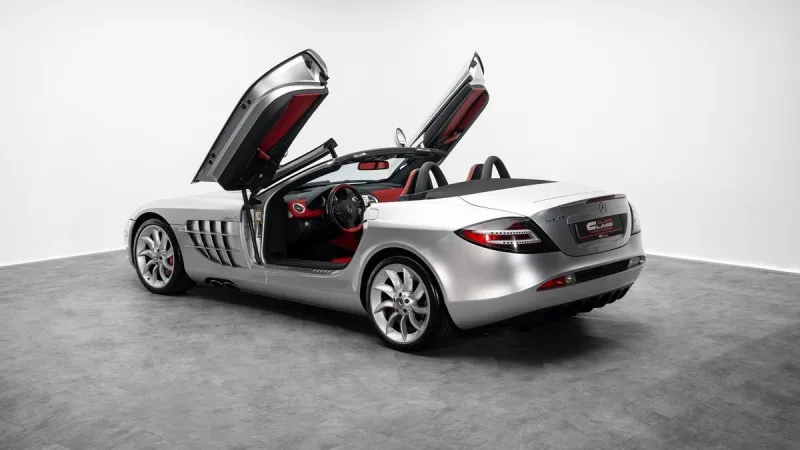 Selling Price: AED 1,885,000 2007 Mercedes-Benz SLR McLaren Roadster Mileage: 13,181 Km Euro Specs Engine Size: 5.4L V8 Horsepower: 617 HP Exterior Color: Crystal Laurit Silver Metallic Interior Color: Red FOR MORE DETAILS, PLEASE CONTACT Web: www.alainclass.com Instagram: https://www.instagram.com/alainclassmotors/ Al Aweer Branch Dubai Phone: +97143782233